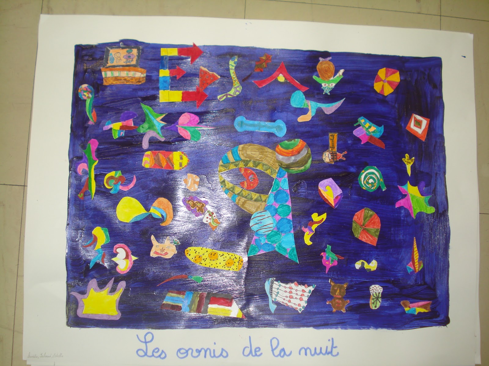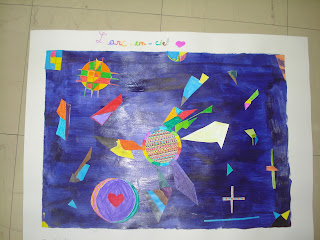 Cette fois-ci, nous nous sommes inspirés de tableaux du peintre Kandinsky. Il fallait travailler à plusieurs sur une même composition.